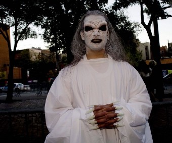 The New York City Village Halloween Parade celebrated its 35th year in 2008. It was time to go back to the essence of the festival of All Souls, the one night when our ancestral spirits can return and walk among us. This 2008 year's theme was Ghost! and the ghostly creations of official Parade puppeteers Superior Concept Monsters lead the march as ephemeral phantom projections floated along.